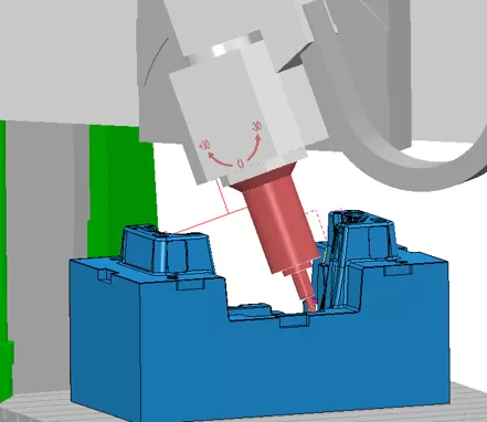 1)Use Short Tools for Machining: When machining deep cavities, the tool angle can be adjusted through the rotation and swinging axes, and shorter tools can be used. Short tools have good rigidity, and higher cutting parameters can be adopted, reducing the cutting time.