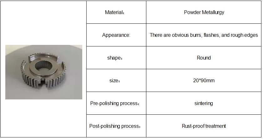 Synchronizer hubs are generally produced by powder metallurgy. During the processing and forming process, due to reasons such as molds, processes or raw materials, visible burrs and burrs often appear on the edges between the teeth or the middle keyway of the product. The existence of this burr phenomenon will have an adverse effect on the surface quality of the product, and have a great impact on the mechanical properties, safety, and user experience of the transmission assembly. Today we will share a case of how to remove burrs and flash from automobile synchronizer hub products and achieve high-efficiency grinding and polishing in large quantities. This grinding process method is also applicable to the deburring and grinding and polishing needs of other automobile parts such as powder metallurgy or castings such as gears, gear rings, and gear sleeves.