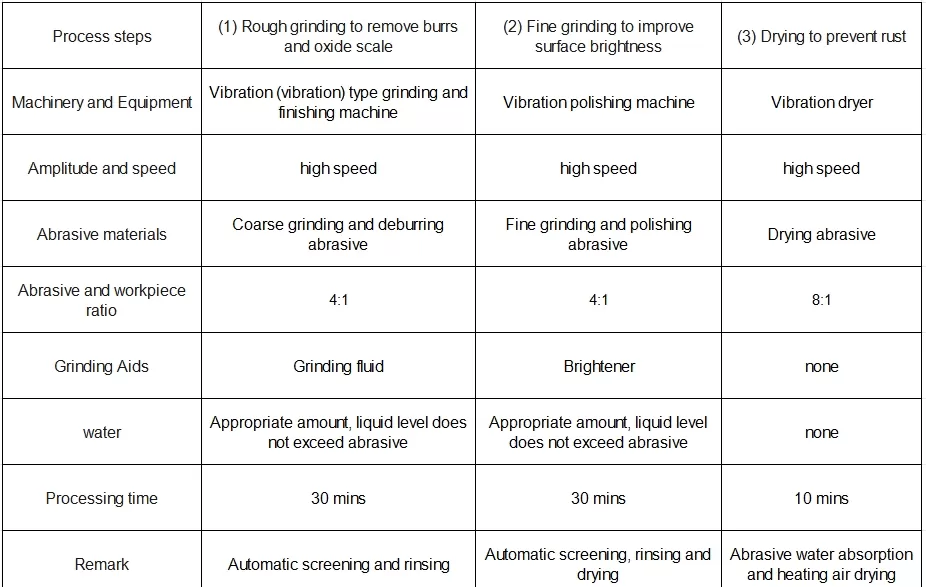 In order to improve the anti-rust and anti-corrosion performance of the product after water, it is immersed in a rust inhibitor for anti-rust treatment after polishing, and finally a vibration dryer is used to dry the surface moisture and dry it.